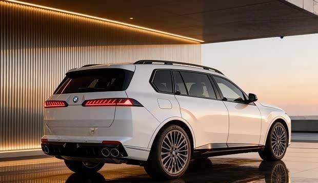 车身侧面轮廓与现款X7较为相似,但后三角窗区域可能有所修改。流畅简洁的车身线条暗示新车或将配备隐藏式门把手。车尾部分仍覆盖着严密的伪装,尾灯尚处于测试初期状态。不过从整体线条判断,其尾灯设计可能借鉴iX3的风格,凸显硬朗科技感。牌照架位置下移至保险杠,并采用双边共四出排气布局。